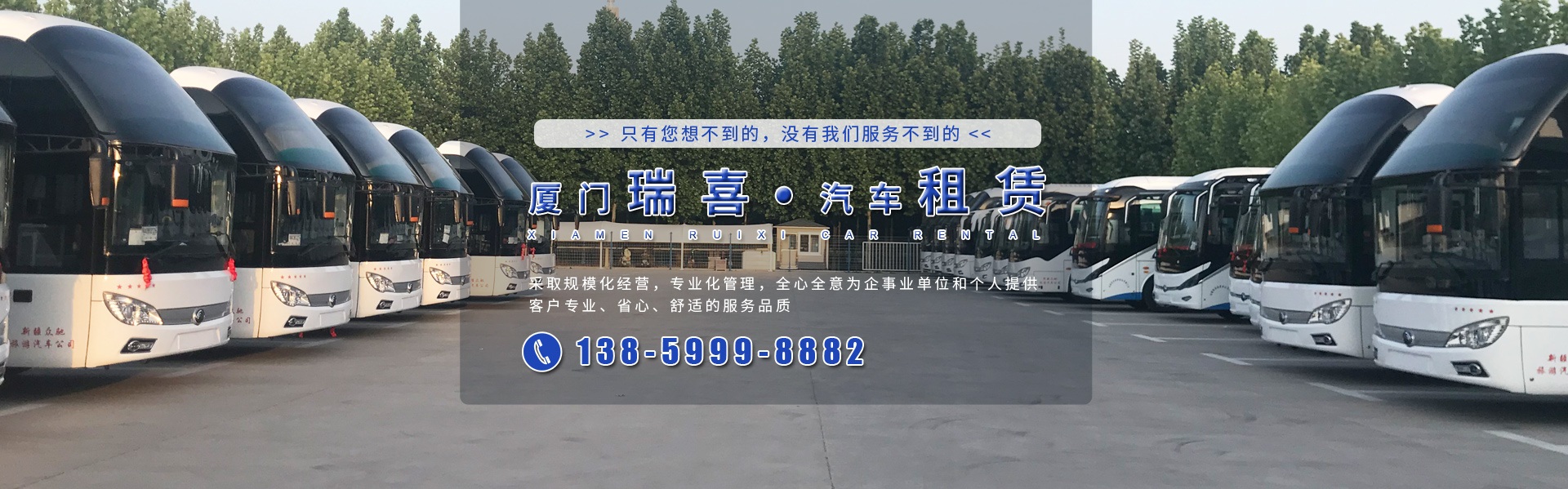 About us廈門瑞喜汽車租賃有限公司是以“誠信、專業,服務社會”為宗旨,采取規模化經營,專業化管理,全心全意為企事業單位和個人提供客戶專業、省心、舒適的服務品質。公司擁有各種國產中巴,大巴等車型。公司還擁有一批技術和路線嫻熟的駕駛員為您隨時提供服務,我們有能力和實力滿足社會不同層次的客戶需求,以及為國內外企事業單位、中外賓客、港澳臺同胞提供各種車輛,公司服務項目多樣化,除了時租、日租、月租、年租外,還可隨時購買新車給顧客長期使用。除此之外,可根據客戶的需要定制出一套適合的租車方案。